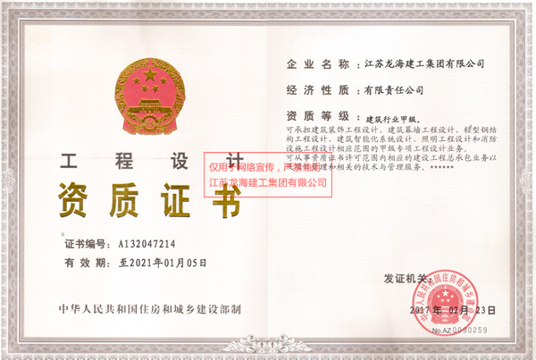 2月23日,龍海建工迎來(lái)特大喜訊——住房城鄉(xiāng)建設(shè)部發(fā)布了“關(guān)于核準(zhǔn)2017年度第二批建設(shè)工程企業(yè)資質(zhì)資格名單的公告”,江蘇龍海建工集團(tuán)成功取得了建筑工程總承包特級(jí)資質(zhì),實(shí)現(xiàn)了企業(yè)又一次具有里程碑意義的歷史性跨越——建筑工程施工總承包特級(jí)資質(zhì)、行業(yè)設(shè)計(jì)甲級(jí)資質(zhì)這兩項(xiàng)業(yè)內(nèi)最高資質(zhì),一次申報(bào)成功,榮幸地躋身至國(guó)家建筑行業(yè)第一方陣。成為了常州市第一家建筑工程總承包特級(jí)資質(zhì)的公司。